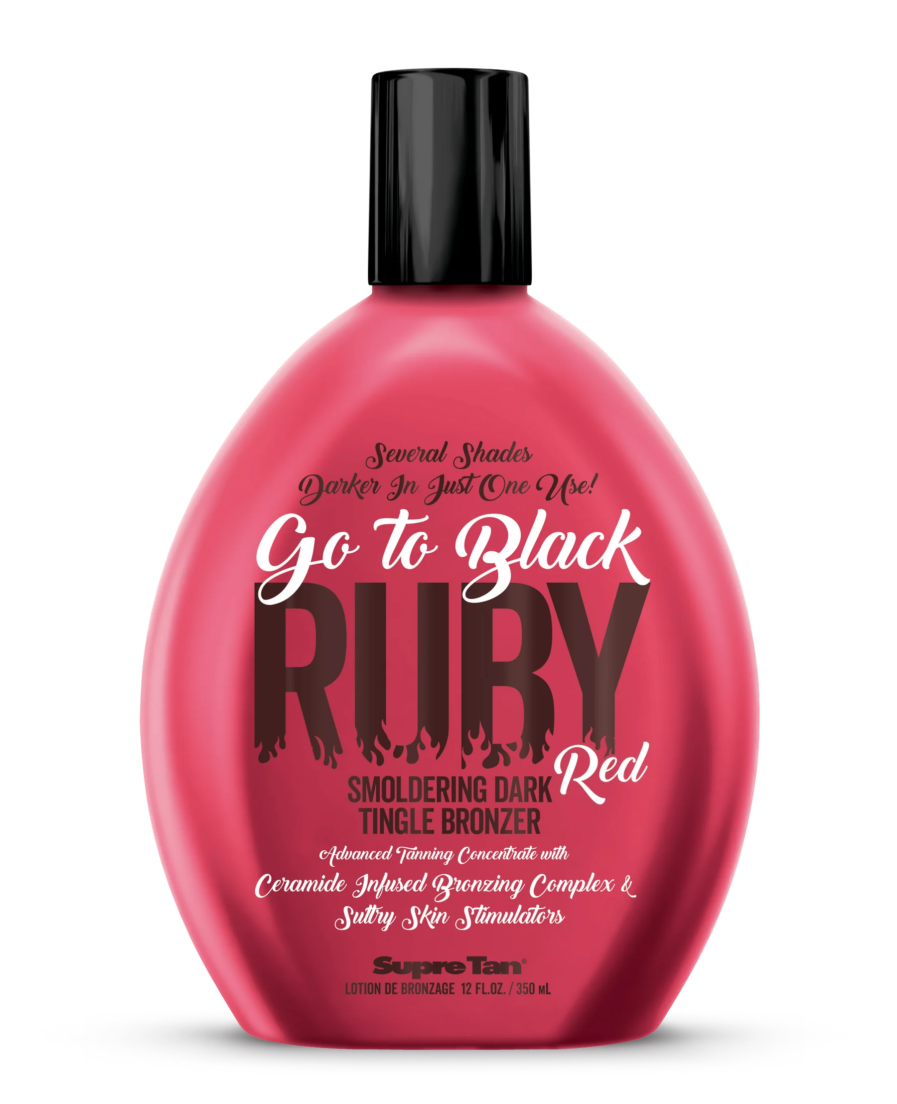 Dare to go darker with Go to Black Ruby Red Smoldering Dark Tingle Bronzer? Designed for advanced tanners, this smoldering formula provides sultry hot skin stimulators and bold delayed bronzers that will take you several shades darker in just one tanning session! Formulated with Tyrosine, Carrot Oil, Argan Oil and a power packed Vitamin Blend, this formula helps nourish your skin for a long lasting, vibrant tan. Hydrating Ceramides and antioxidant rich Raspberry Extract help soothe and soften skin so you can ignite your Ruby Red Glow.