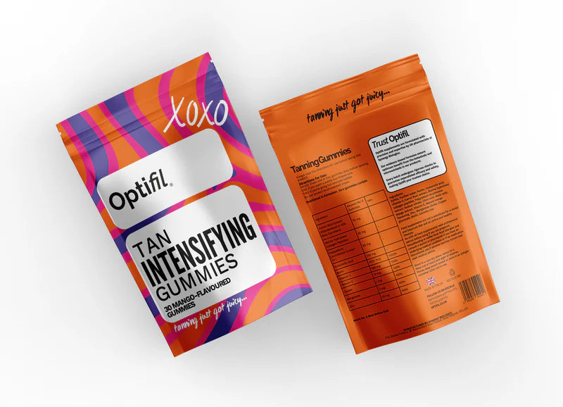 Optifil Tan Intensifying Gummies are designed to deliver a deeper, faster, and more even tan. These delicious mango-flavoured gummies work from the inside out, helping the body tan more efficiently while also supporting skin protection against UV damage.